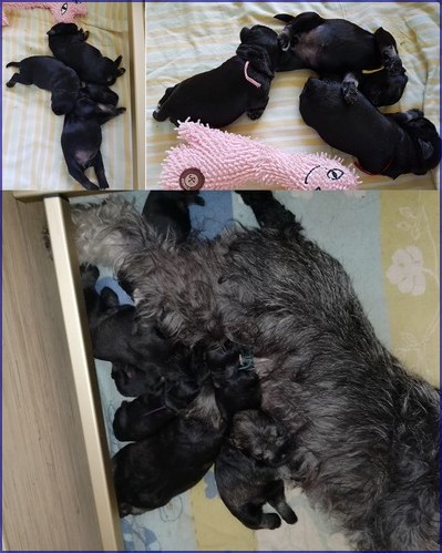 08.08.2018 Dzisiaj przywitaliśmy na świecie 3 dziewczynki w kolorze pieprz i sól ze skojarzenia naszej suczki JENNY GREY STAR OF Rainbowland FCI oraz pięknego pieska importowanego z Wielkiej Brytanii - Kopykats CAPTAIN CRUNCH